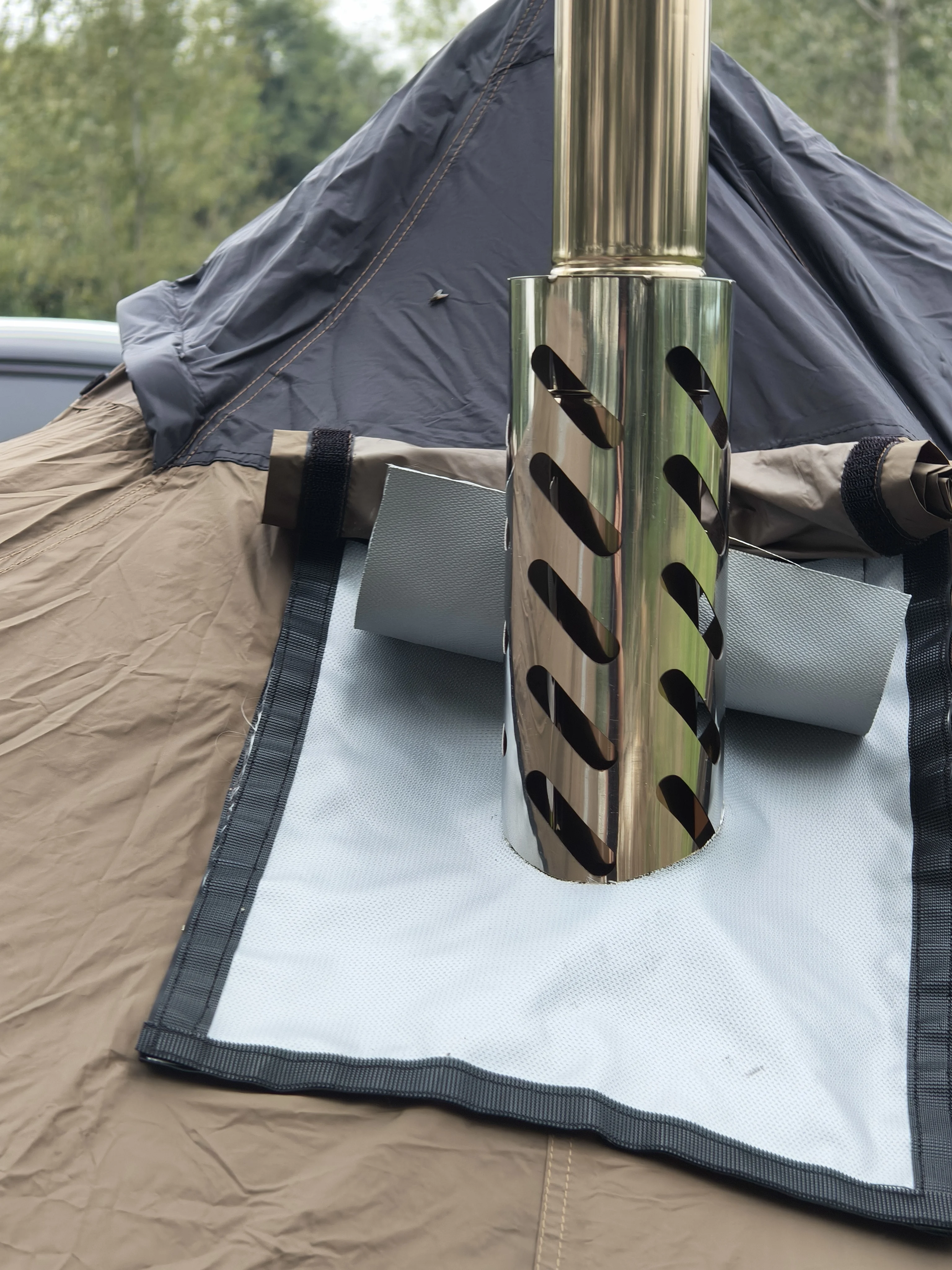 A: The basic configuration comes with: (60∅-30cm)Chimney Pipe(6PCS) + (90∅-29cm)Anti-scalding chimney protector(1PCS ), inside the stove