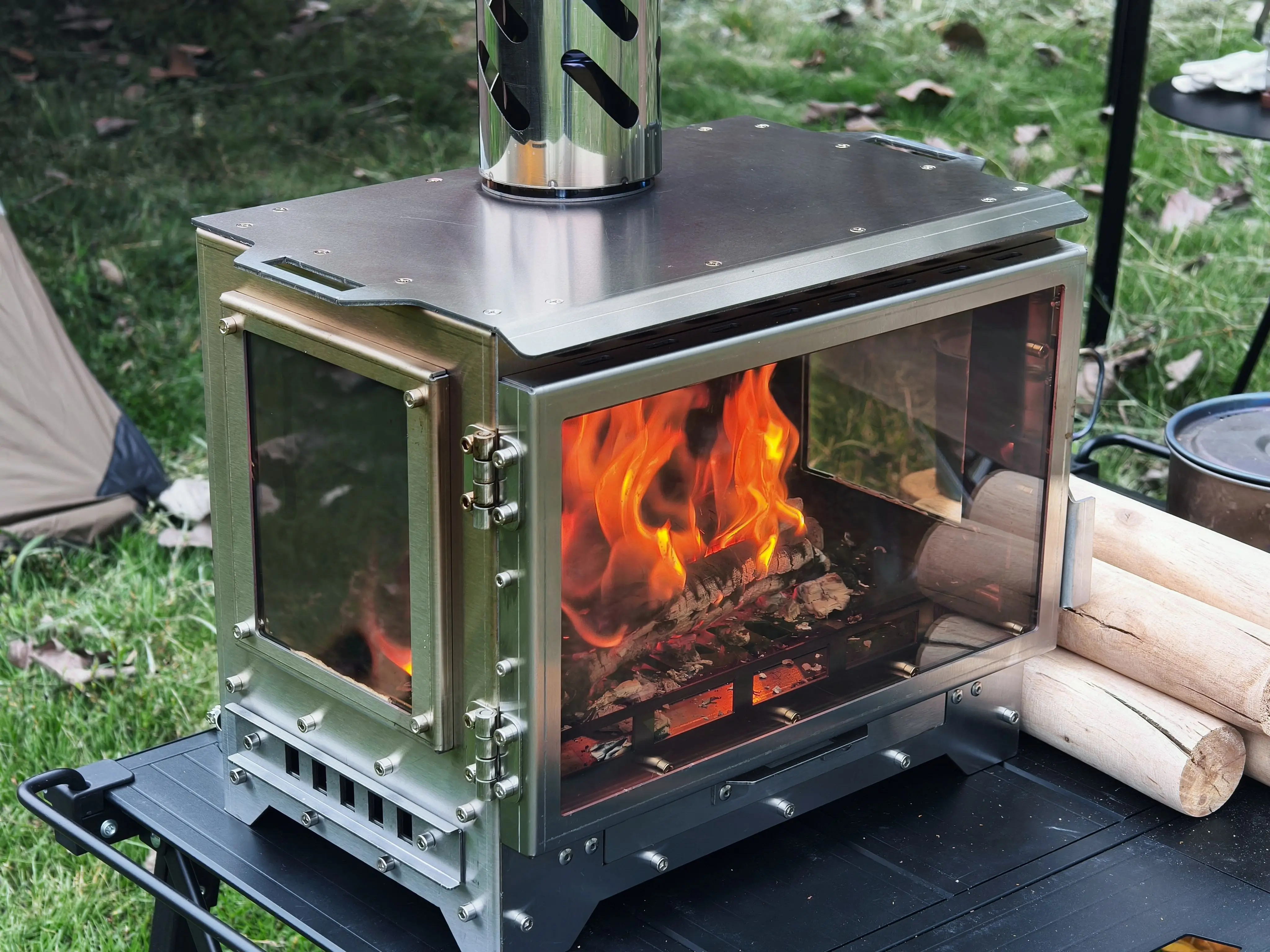 SmiloDon Wood Camping Stove, 430SS Smokeless Fireplace, Portable Tent Heater, 3-Glass View Bonfire Stove, Secondary Burn Stove
