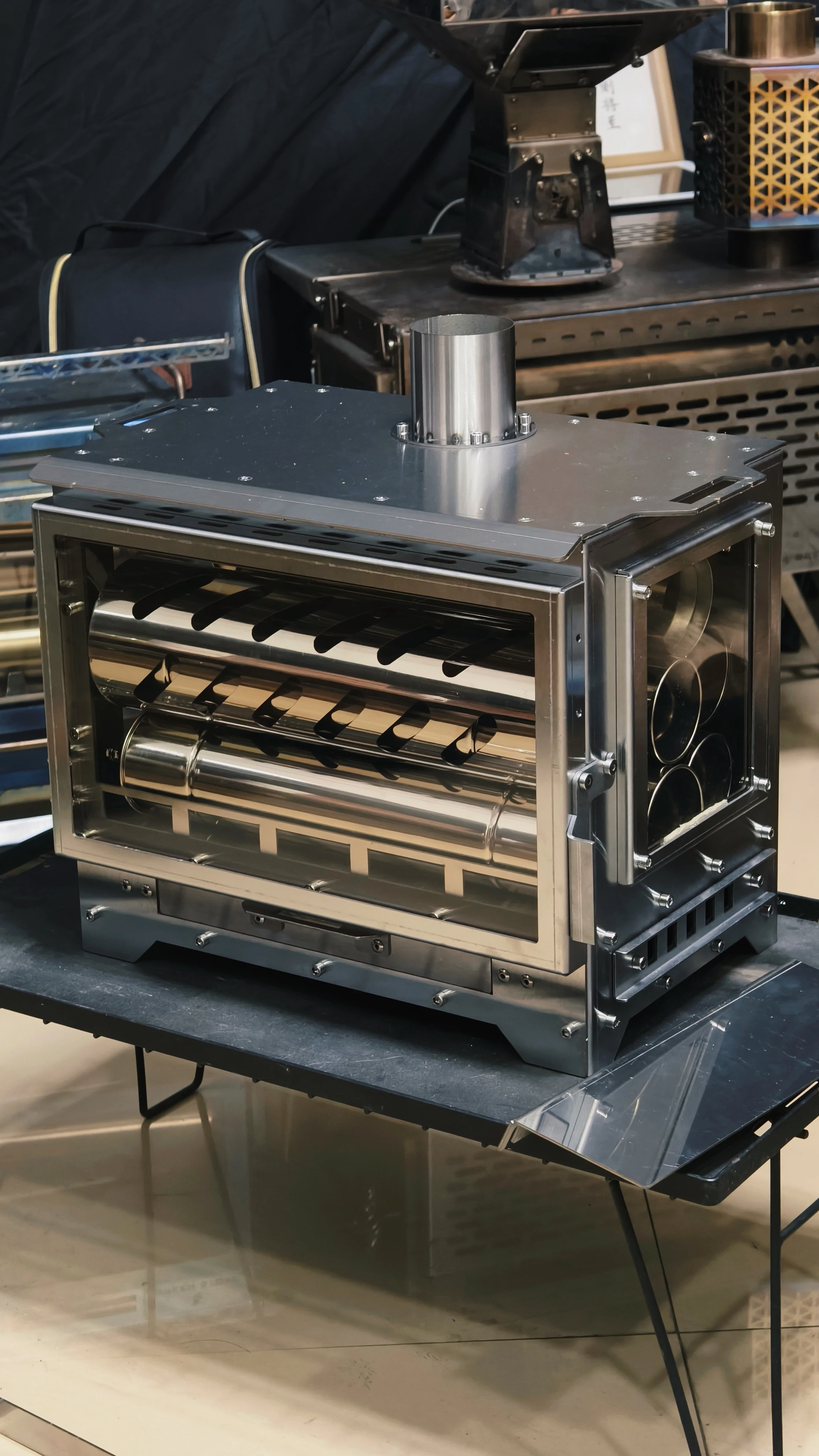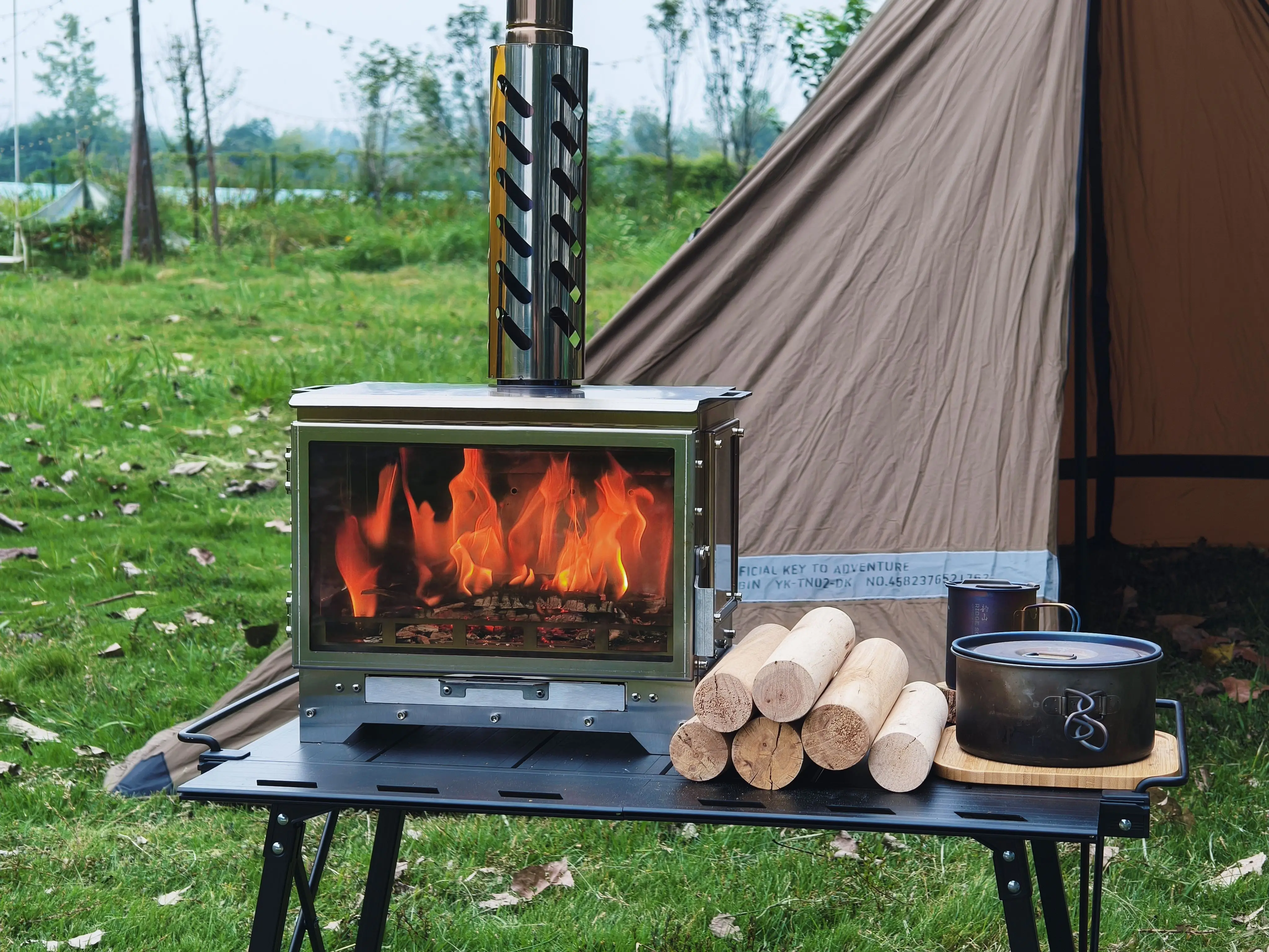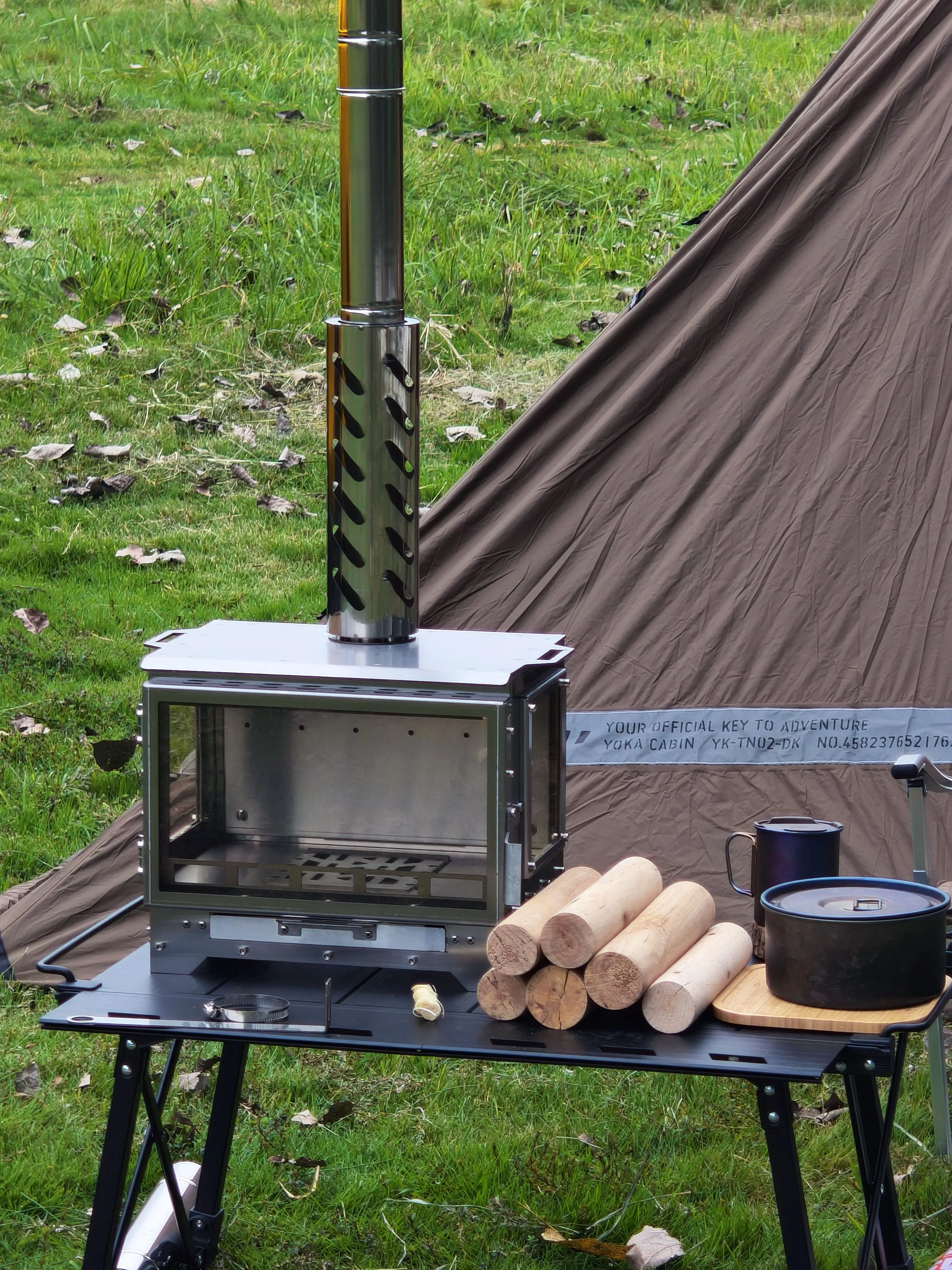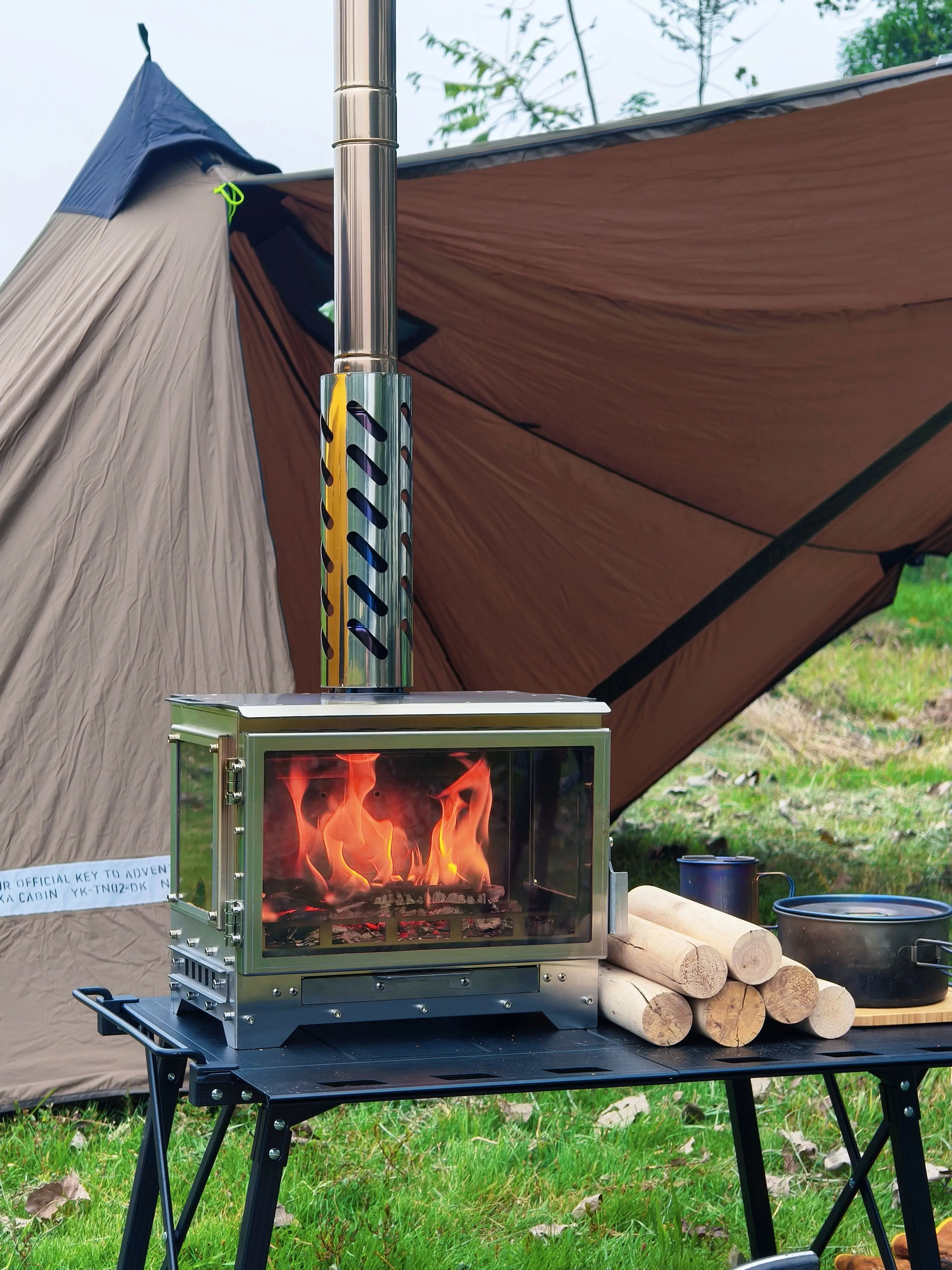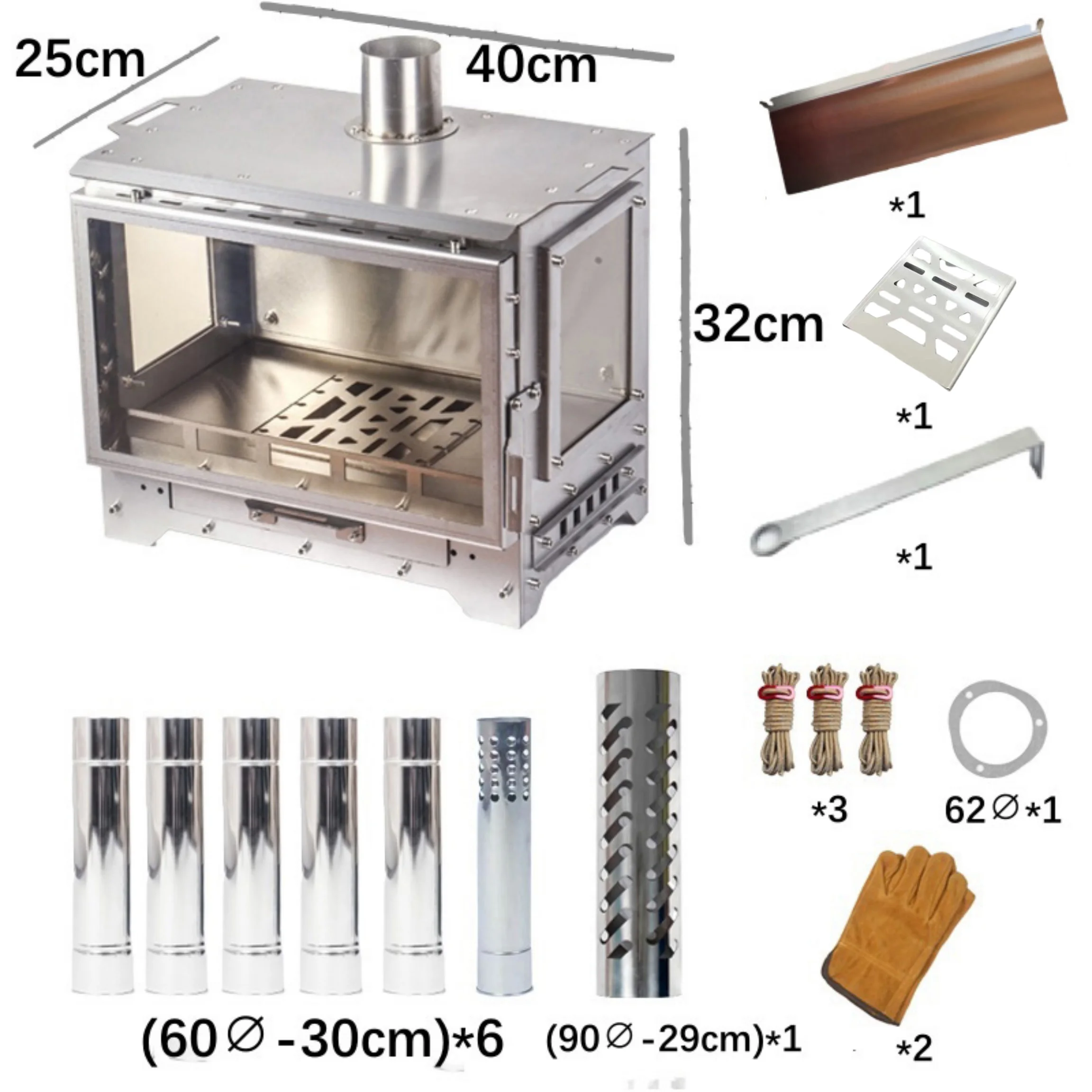 – Height: The standard version comes with 6pcs of 30cm chimney pipes, with a total height of 180cm, plus the 32cm furnace body height, the total height is about 210cm