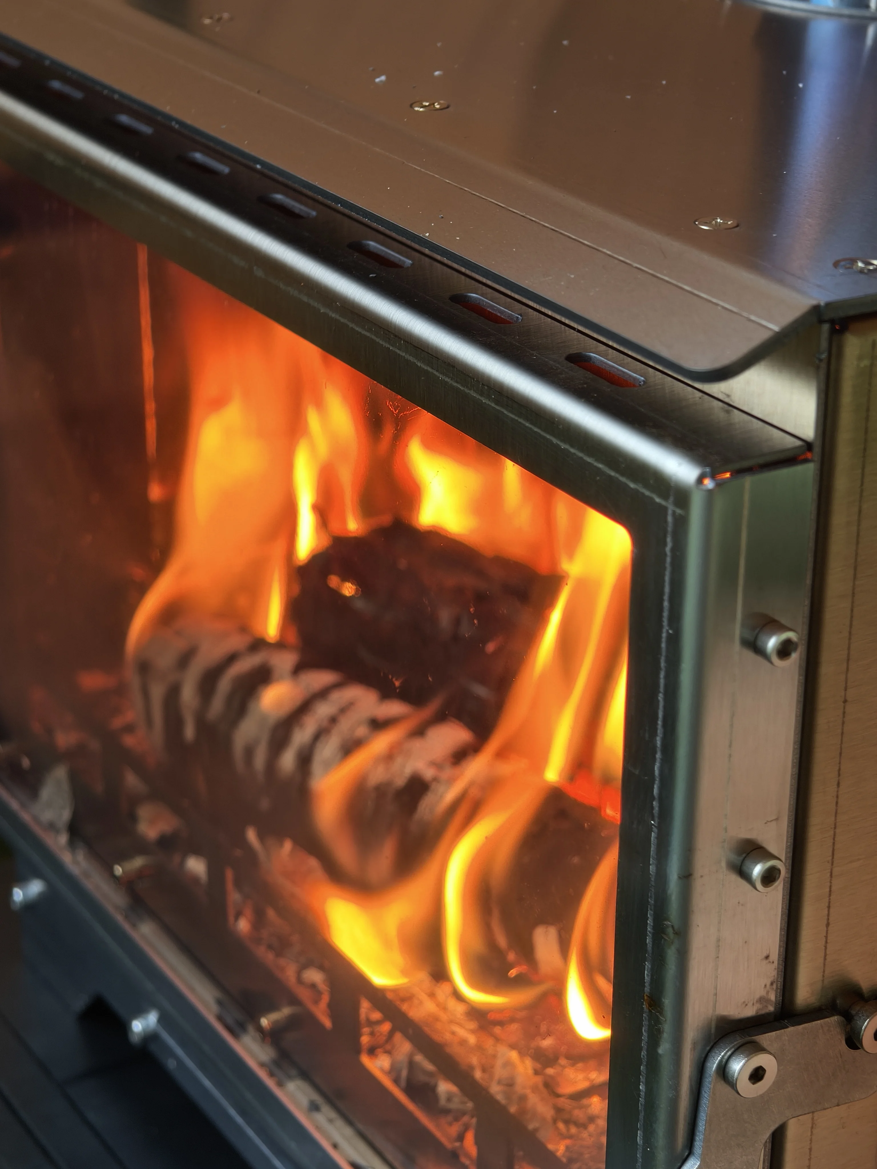 Precision rear air-inlets reignite smoke for 20 % more flame and 30 % less emissions—cleaner heat, longer burn.